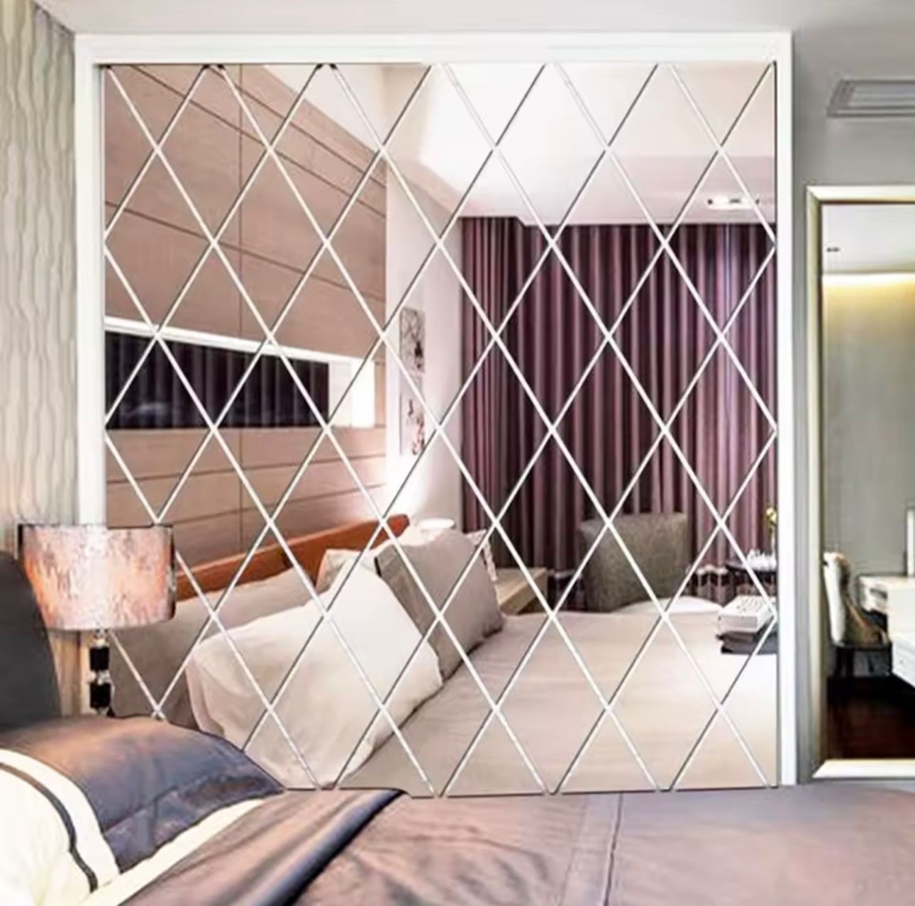 Dekorativne stenske zrcalne ploščice ustvarijo eleganten videz zrcalnega zidu ali mozaika. So lahke, enostavne za namestitev in ne zahtevajo mojstra – odstranite zaščitno folijo in jih prilepite na čisto, ravno površino. Odlične so za urejanje modernih interierjev ter dodajanje dodatne globine prostoru.