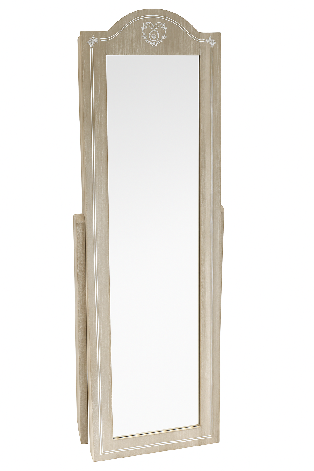 - 2 v 1 dizajn – veliko stoječe ogledalo + skrit omariček za nakit