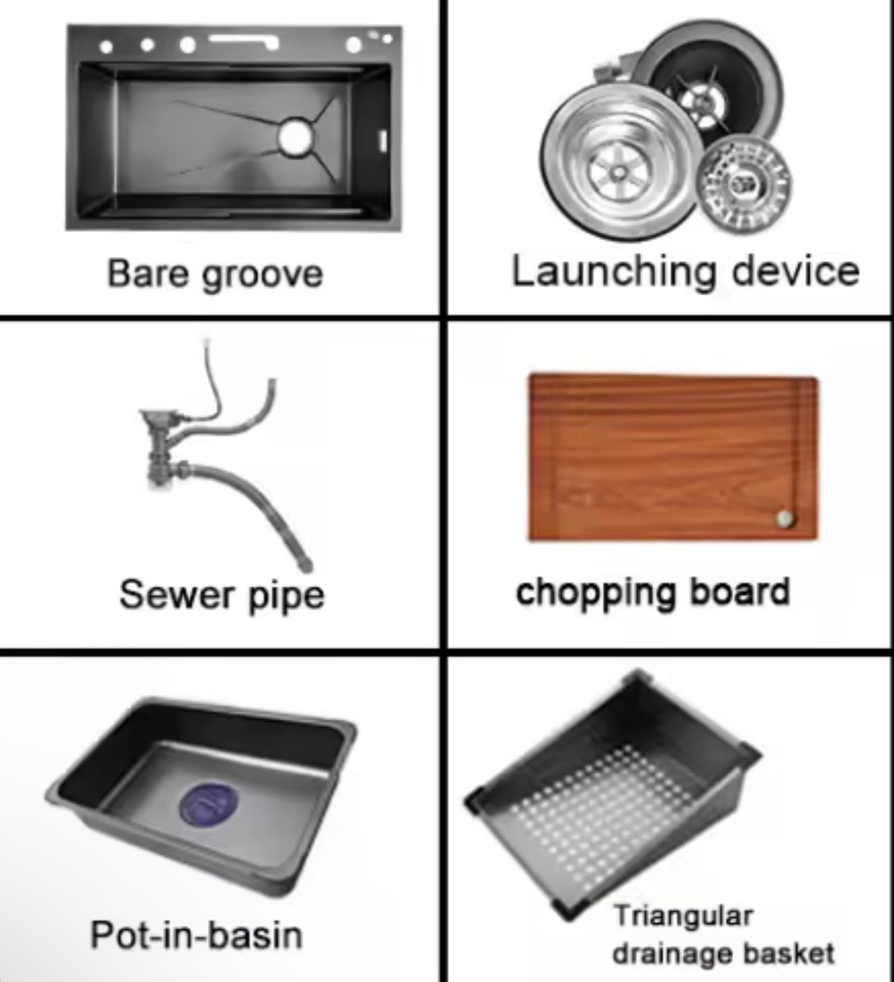 Korito je izdelano iz visokokakovostnega nerjavečega jekla v mat črni izvedbi z zlatimi elementi, ki kuhinji dodajo ekskluziven videz. Pomična rezalna deska in perforirana posoda drsita po robu korita, kar korito spremeni v praktično delovno postajo. Popolno za vsakodnevno pripravo hrane, izpiranje, odcejanje in urejeno organizacijo brez nereda.