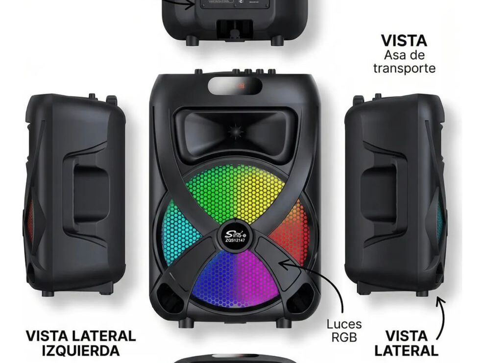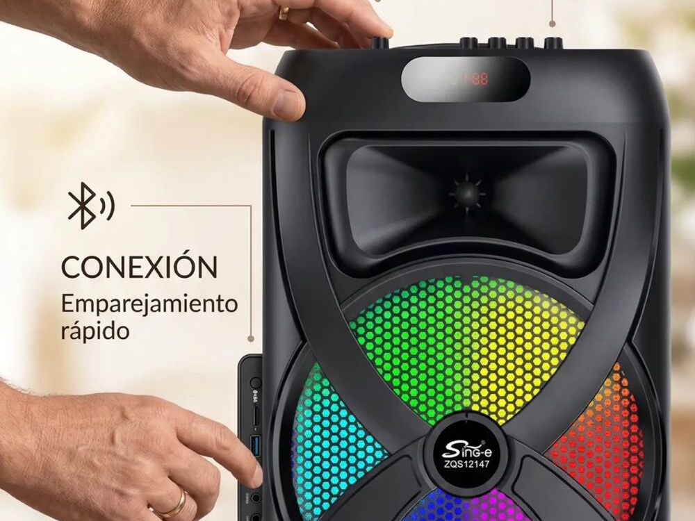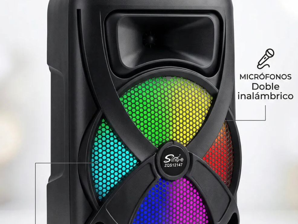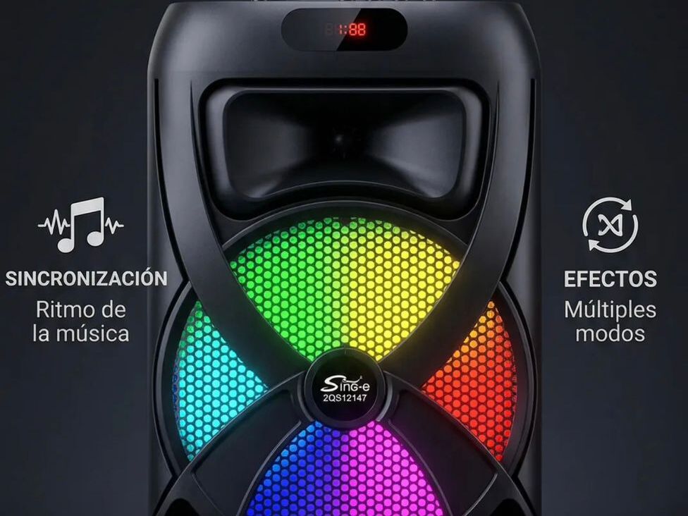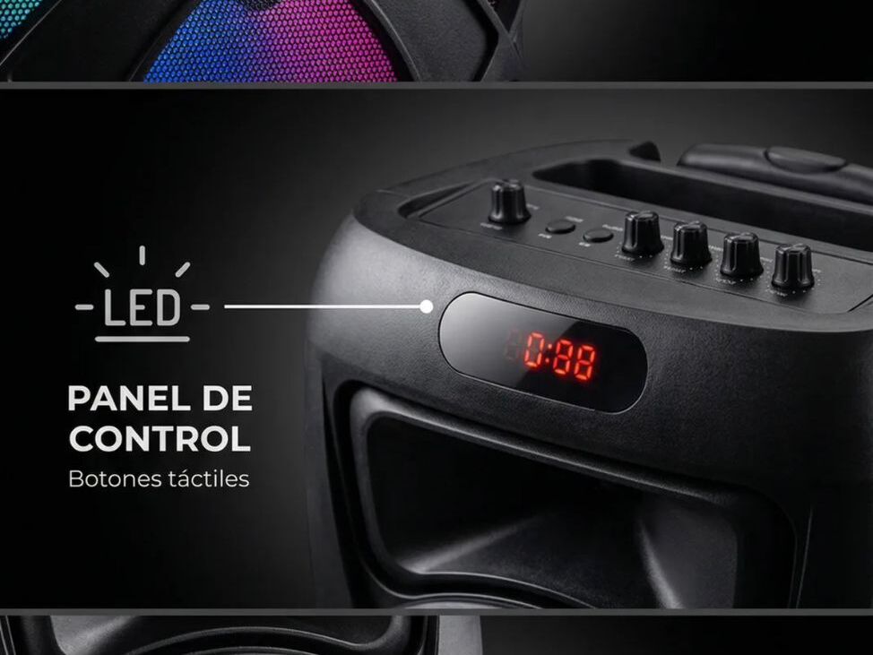 Močan party zvočnik, ki prinaša močan bas, LED svetlobne učinke in karaoke zabavo. Idealna rešitev za zabave, praznovanja in glasbo, ki napolni prostor z energijo.