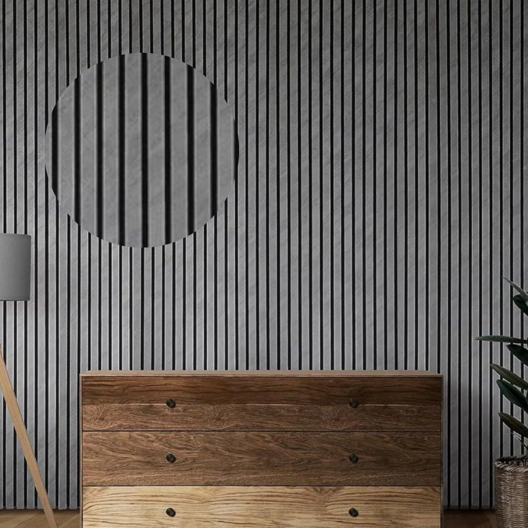 Grey Edition prinaša brezčasno eleganco v vaš dom. Sive letve na temni podlagi ustvarjajo popolno ravnovesje med modernim minimalizmom in surovo teksturo betona ali kamna. Ta panel ni le okras, temveč element, ki bo posodobil vaš prostor.